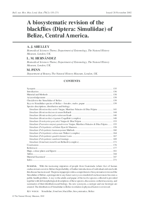 Pdf A Biosystematic Revision Of The Blackflies Diptera Simuliidae Of Belize Central America Luis Miguel Hernandez Triana Academia Edu